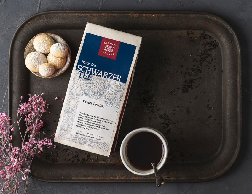 Igazi Bourbon vanília darabokat tartalmazó kínai-indiai-ceyloni teakeverék, egy leheletnyi természetes vanília aromával, valamint búzavirágszirommal meghintve.